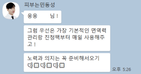 여드름 피부 때문에 늘 고민이 많았던 저는 피부는민동성 유튜브를 보고 1:1 카톡을 하게 됩니다. 민동성님에게요.