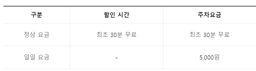 기본 1시간 무료주차에서 시간이 초과될 경우, 추가 시간 10분당 200원으로 측정 됩니다. 저렴하게 이용할 수 있으면서 24시간 운영이 되고 있기 때문에 이용하기 좋습니다.