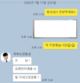 2020년 7월 17일 금요일. 드디어 1:1 여드름케어 솔루션을 시작해야겠다 마음을 먹고 스킨스쿨 사이트로 들어가서 피부는민동성 1:1 솔루션패키지를 결제하고 동성님에게 결제본을 캡쳐해서 보낸 다음 연락을 드렸습니다. 여전히 결제 했을때나 결제 전이나 반갑게 맞아주시는 동성님.