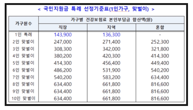 원래 2인 가구 직장보험료 기준은 191,100원 이하인데 특례가 적용되면서 기존 3인에 해당하는 247,700원 이하 기준에서 적용이 됩니다.